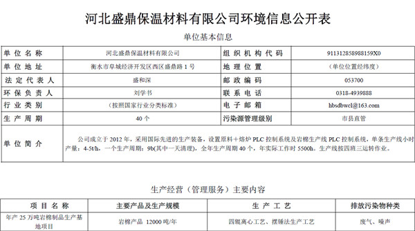 河北盛鼎保溫材料有限公司環(huán)境信息公開表