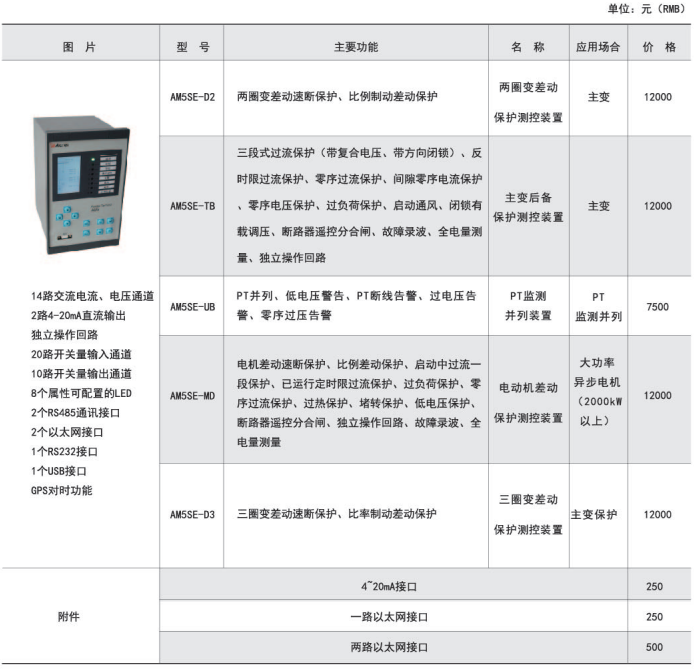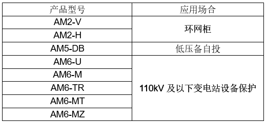 | AM6-D2 變壓器差動保護裝置(二繞組) | 110kV及以下電壓等級容量為6300kVA及以上的變壓器 |