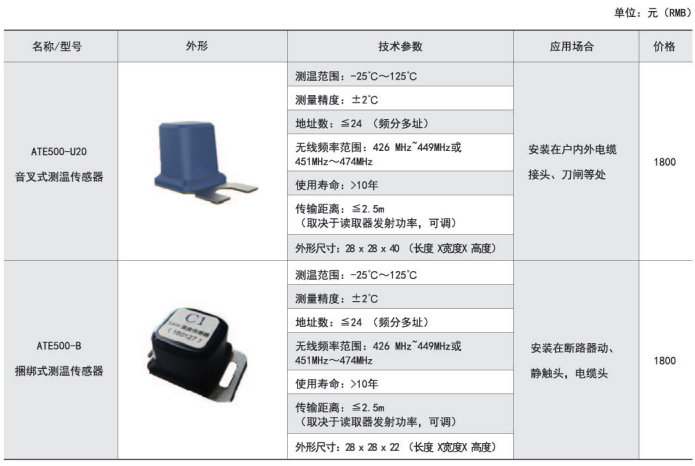 適用于高低壓開關柜內電纜接頭、斷路器觸頭、刀閘開關、高壓電纜中間頭、干式變壓器、低壓大電流等設備的溫度監測。
