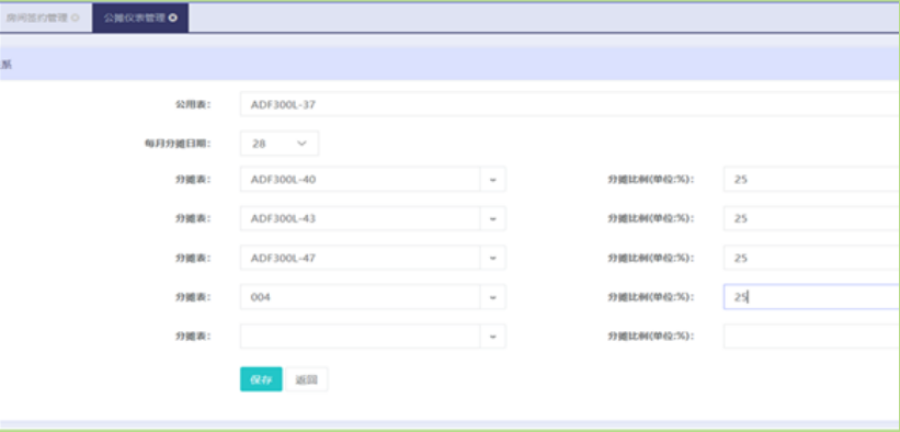 指定某塊表為主表,然后分配關聯(lián)子表,系統(tǒng)每個月自動將主表的用電按比例換算成電費從子表中扣除,這樣可以剩余人工統(tǒng)計的麻煩。